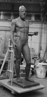 ① 3Dスキャンデータを利用して手作業で原寸大の塑造原型を作り、推定した古代の制作技術に従って鑄造~熔接[今のところここまでで中断]=Hada 2013; 2014; 2021~